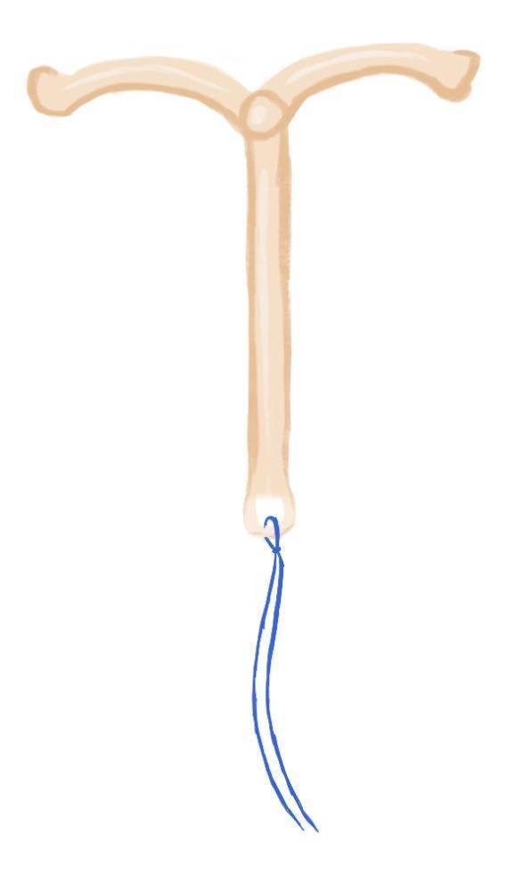 它长着两个横臂,还有1个纵行的杆,形状像“T”,尾部有尾丝,大部分上过节育环的女性可能比较熟悉,但是它跟我们普通的节育器不太一样,这个纵臂中有足够释放5年的药物,一共52mg,每天平均释放20ug。可以有效的缓解痛经和经量大的症状。